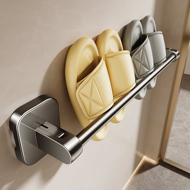 伸縮式タオルバー吸盤多機能パンチフリー回転壁掛け浴室スリッパ乾燥収納シングルロッド棚
