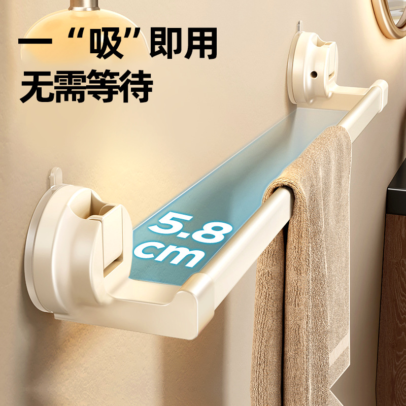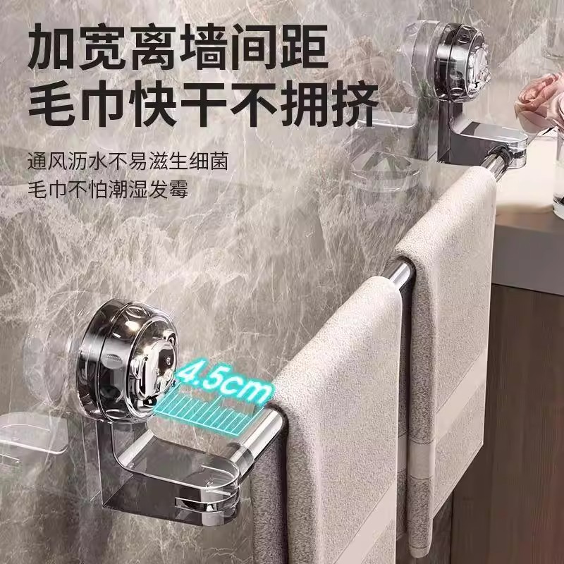 吸盤タオルバー 浴室パンチフリートイレ 浴室壁掛け二本竿 シングルロッド収納ラック ハンガータオルラック