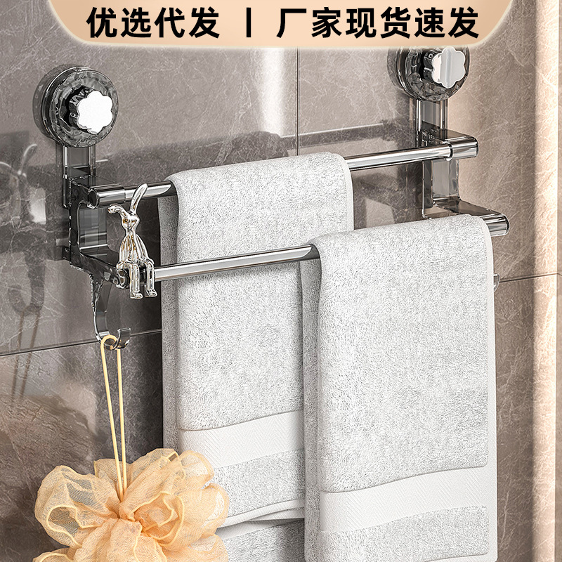 吸盤タオルラック浴室タオルバーホームライト高級タオルスリッパ収納ラックフックダブルロッドタオル収納ラック