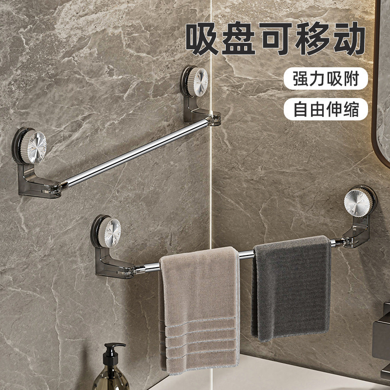 吸盤タオルラックバスルームパンチフリーバスルームタオルバーバスタオル壁掛け収納ラック収納ラックシングルおよびダブルロッド
