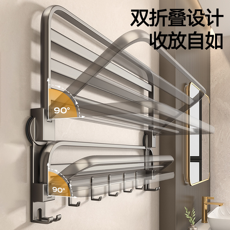 隐形折叠晾衣架放衣架浴室隐形置物架洗澡衣服厕所一字浴巾悬挂