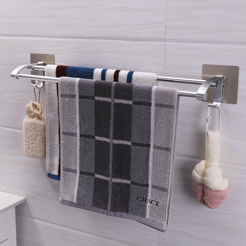 双慶穴なしトイレタオルバー浴室ダブルバー壁掛け延長タオルラック58cm 5215