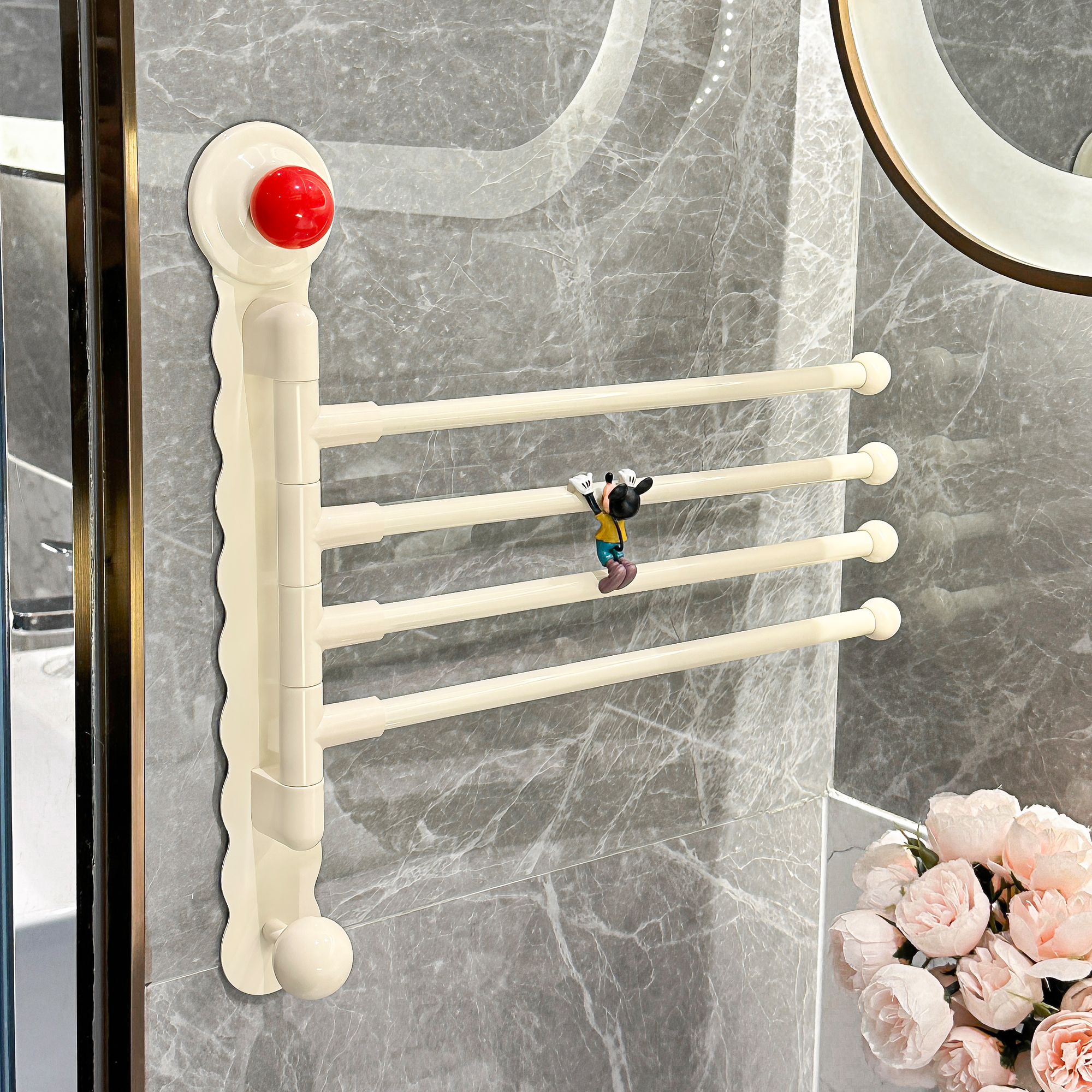 吸盤回転タオルラックパンチフリーバスルームマルチロッド折りたたみバスルームタオルラック収納ラックタオルハンギングロッド