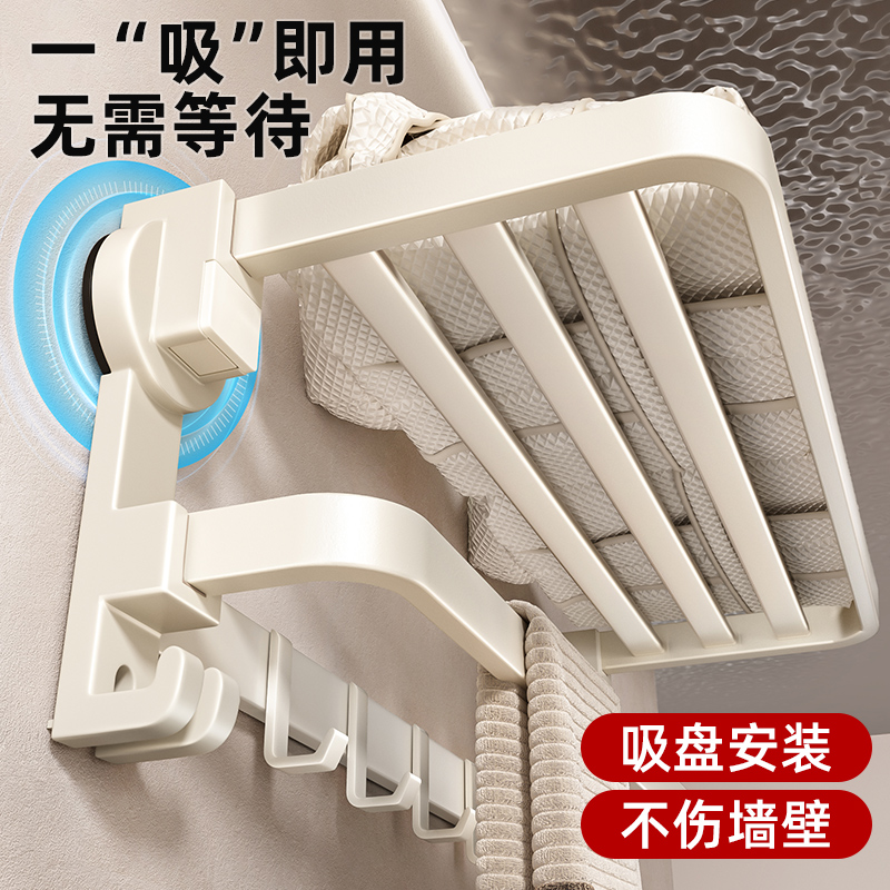 吸盤回転タオルラック浴室パンチフリー折りたたみ収納吊りロッド浴室壁掛けタオルマルチロッド収納ラック