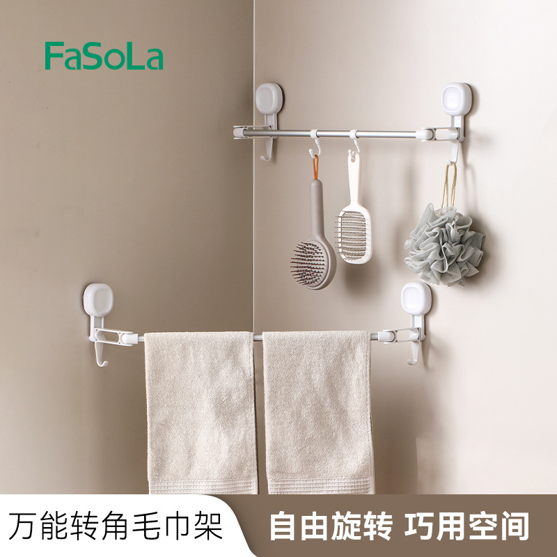FaSoLa吸盤式タオルラックトイレ穴なし壁掛けタオル掛け万能コーナータオル掛け