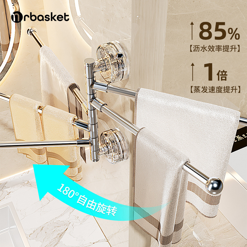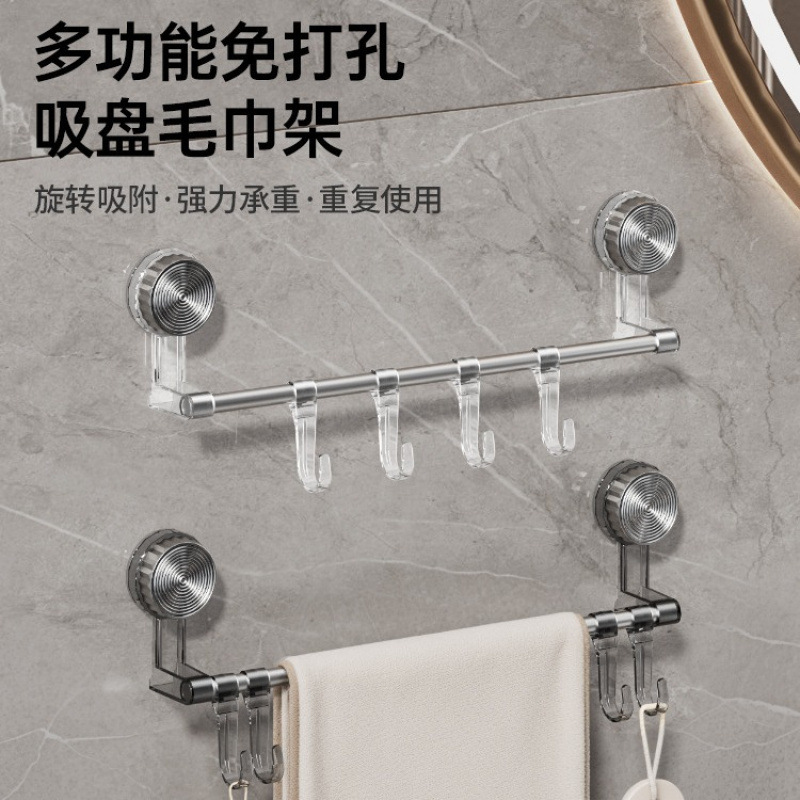 吸盤タオル掛けトイレ穴なし壁掛け棚浴室回転多棒タオル掛け棒バスタオル掛け棚
