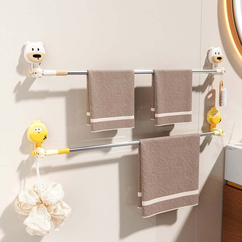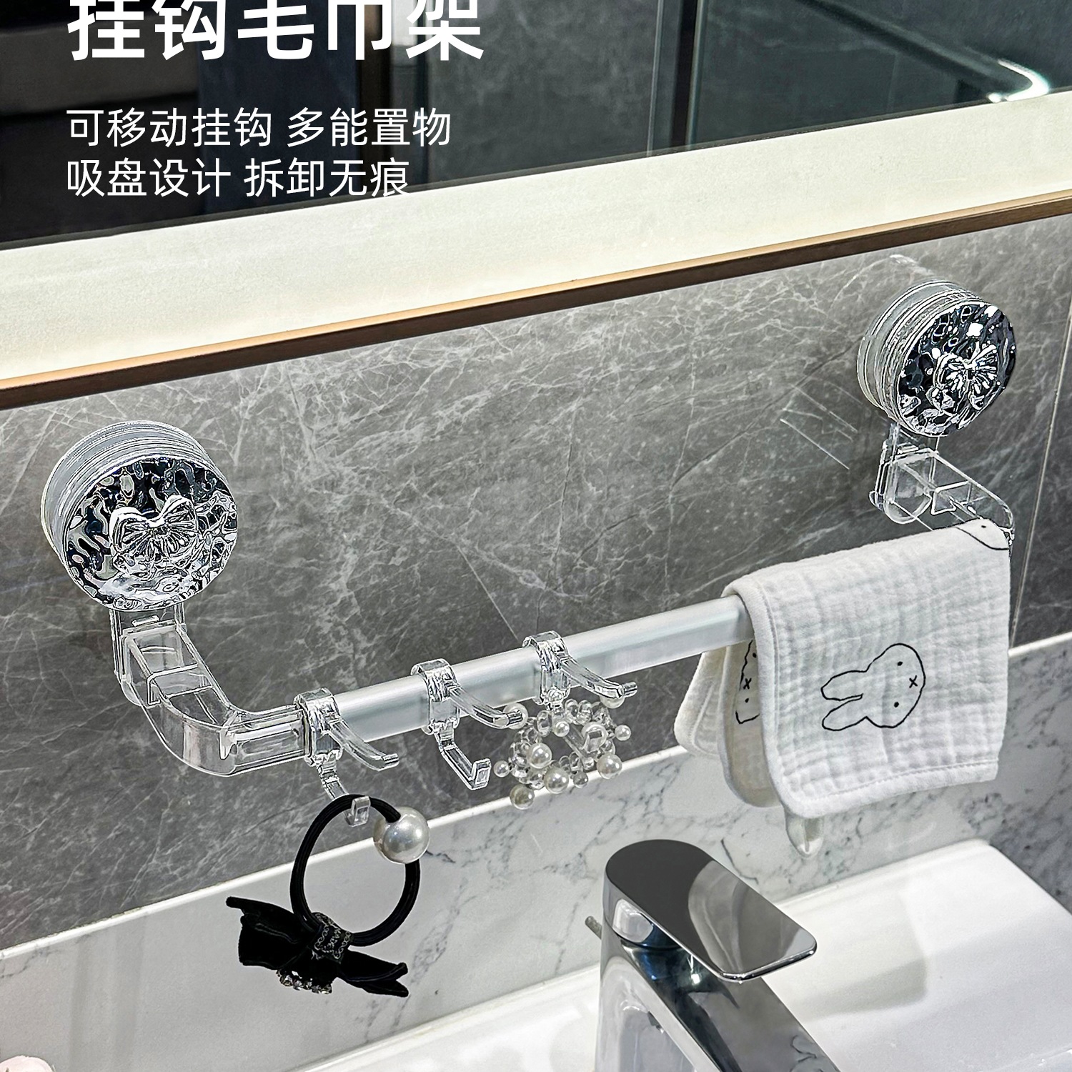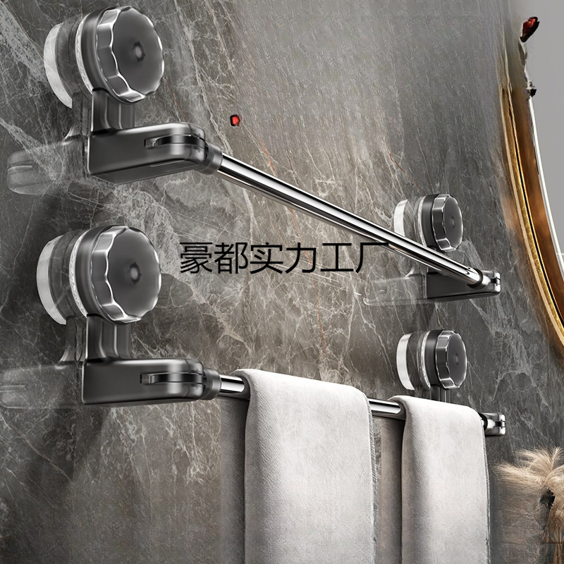 吸盤タオルラック浴室壁掛けパンチフリーバスルームバスタオル収納ラックトイレタオル吊りロッドフックラック