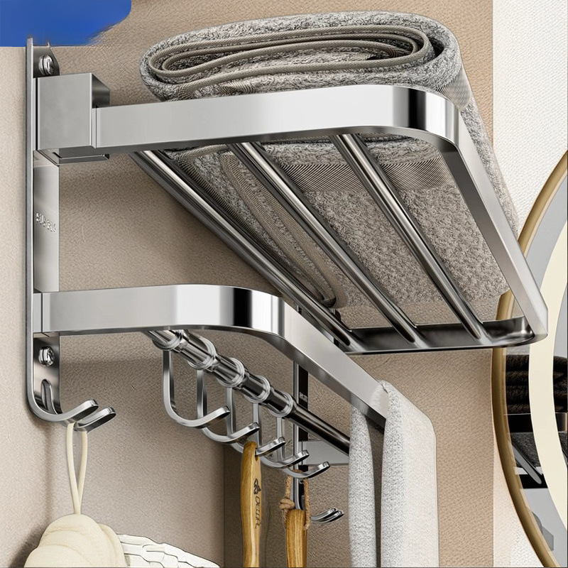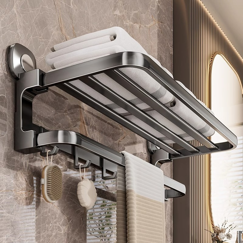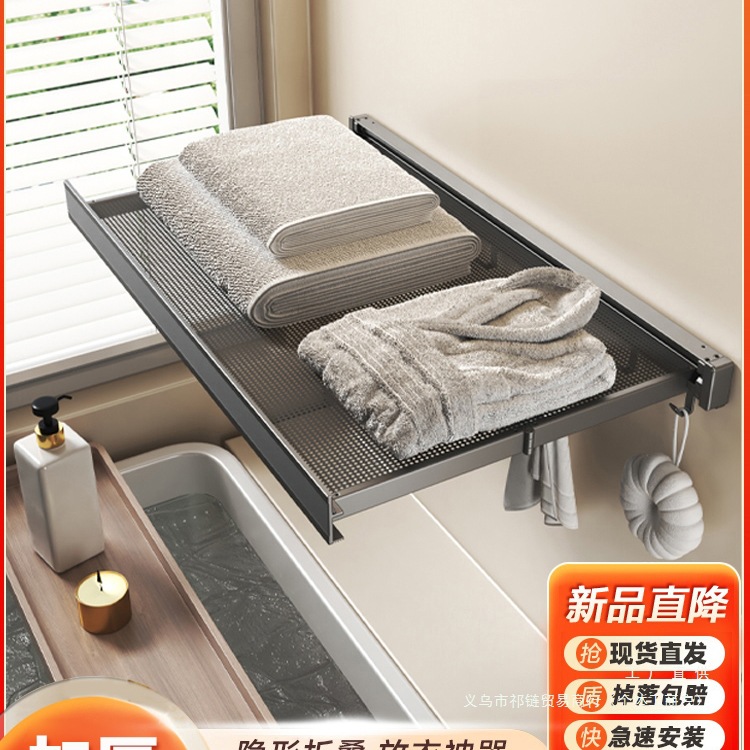 浴室の目に見えない折りたたみバスタオルラックパンチフリー壁掛けバスルームタオルラック衣類収納ラック器具