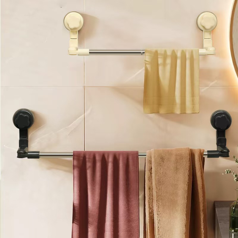 吸盤タオルラックシングルロッド伸縮式回転式バスタオルラックバスルーム収納棚パンチフリーバスルームタオルラック