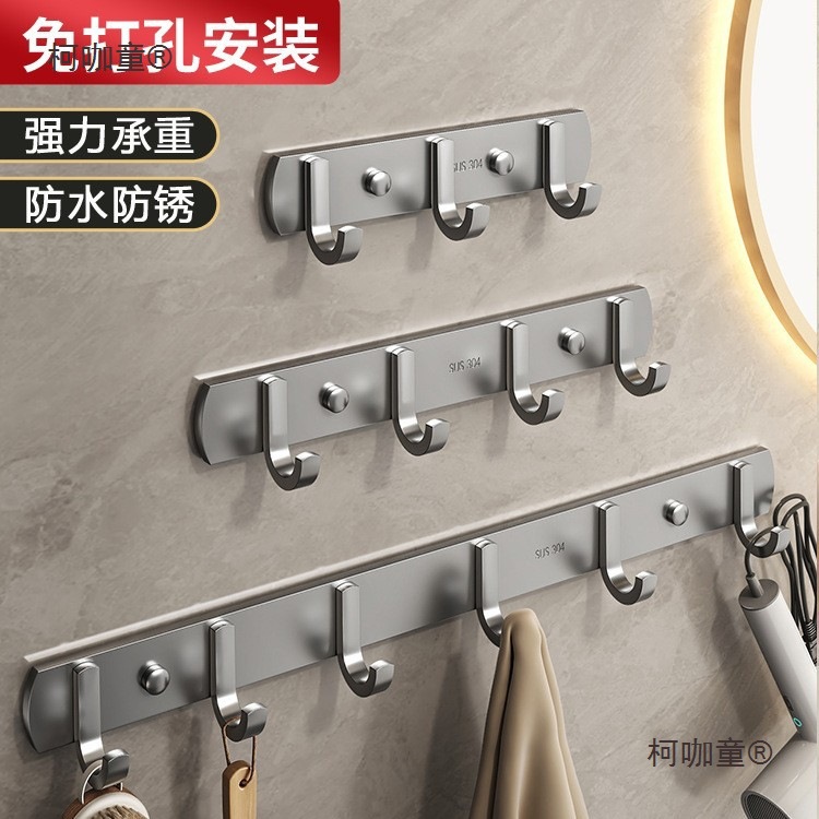 卫生间毛巾架免打孔太空铝置物架壁挂厕所浴室门后浴巾毛巾麦太保