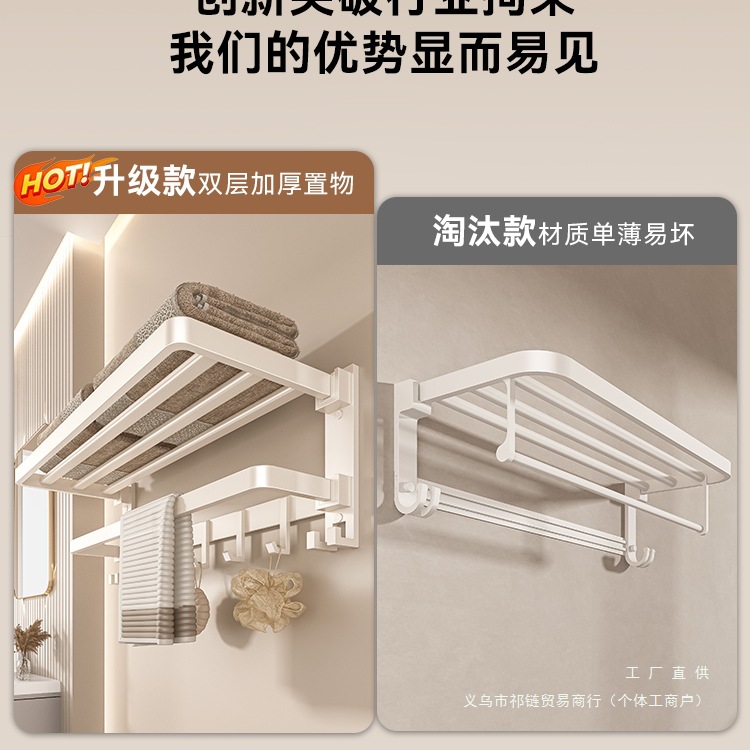 パンチフリーバスルーム二層タオルバー浴室吸盤ハンガーバスタオルラック北欧クリエイティブ折りたたみタオルラック