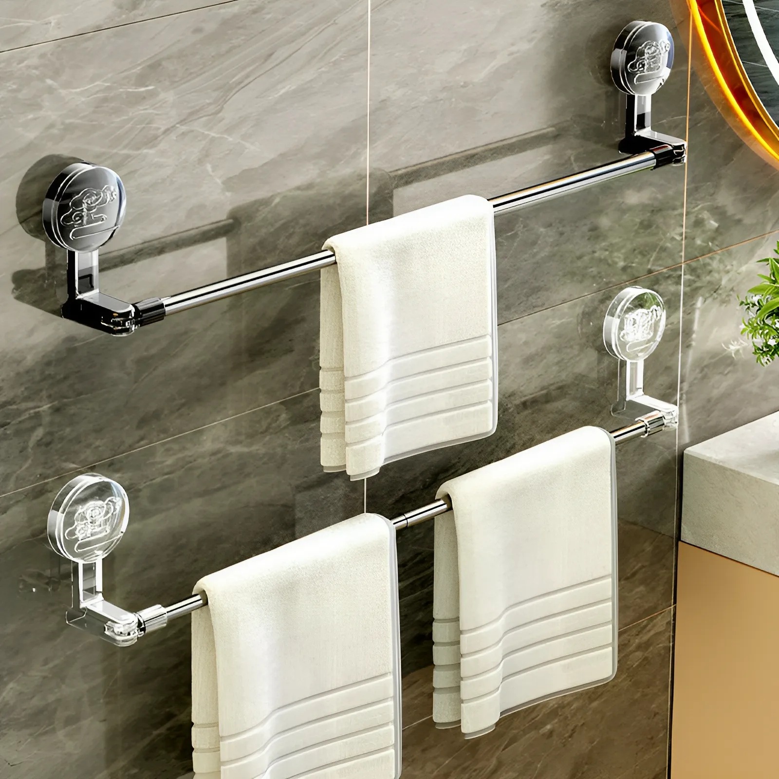 吸盤タオルラックダブルロッドバスルームバスタオルラックバスルーム壁掛けパンチフリーストレージタオルラックバー