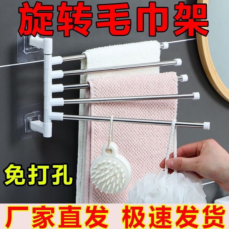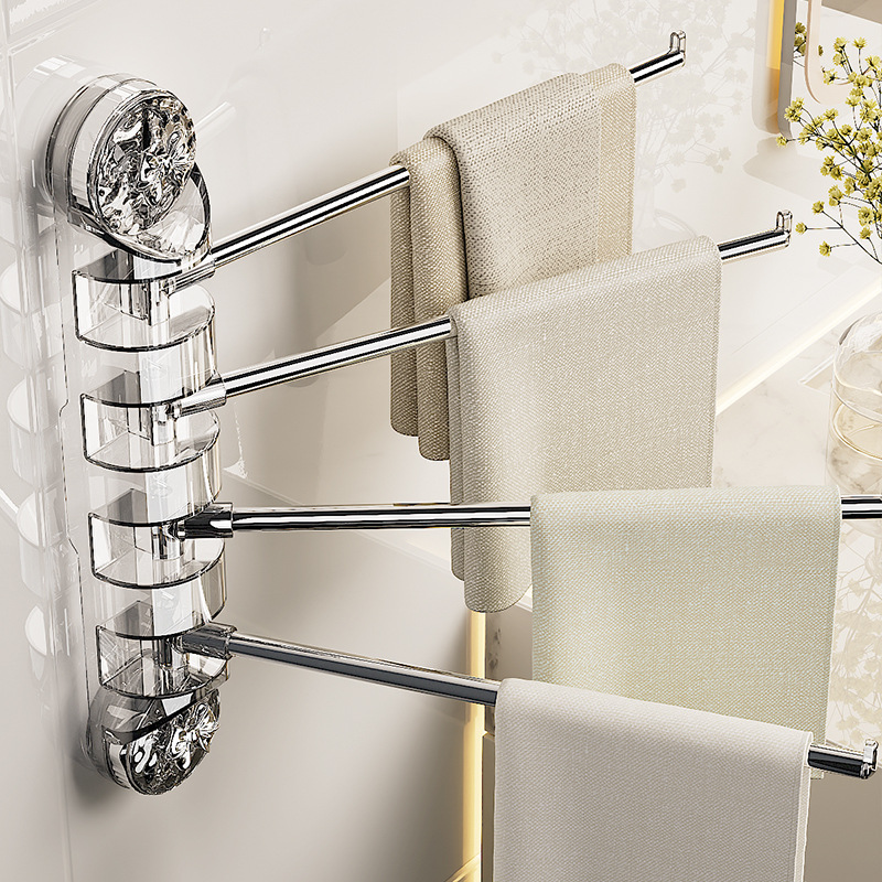 吸盤タオルラックバスルームパンチフリーロータリーマルチロッドバスタオル収納ラックバスルームコーナー折りたたみタオルハンガーロッド