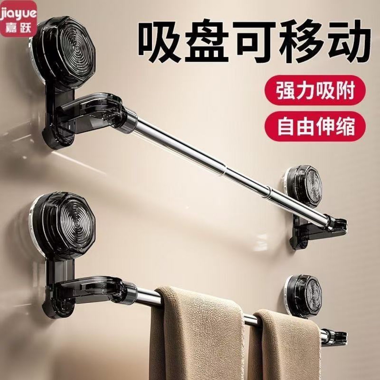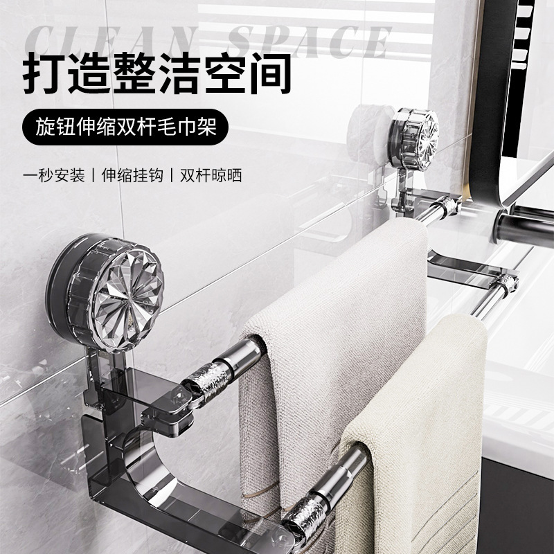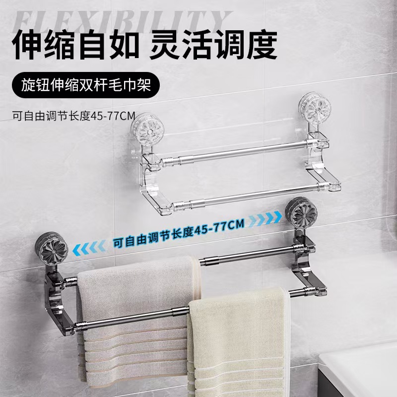 ノブ吸盤タオルラックダブルロッド伸縮バスタオルラックバスルーム収納ラックバスルームパンチフリータオルハンギングロッド