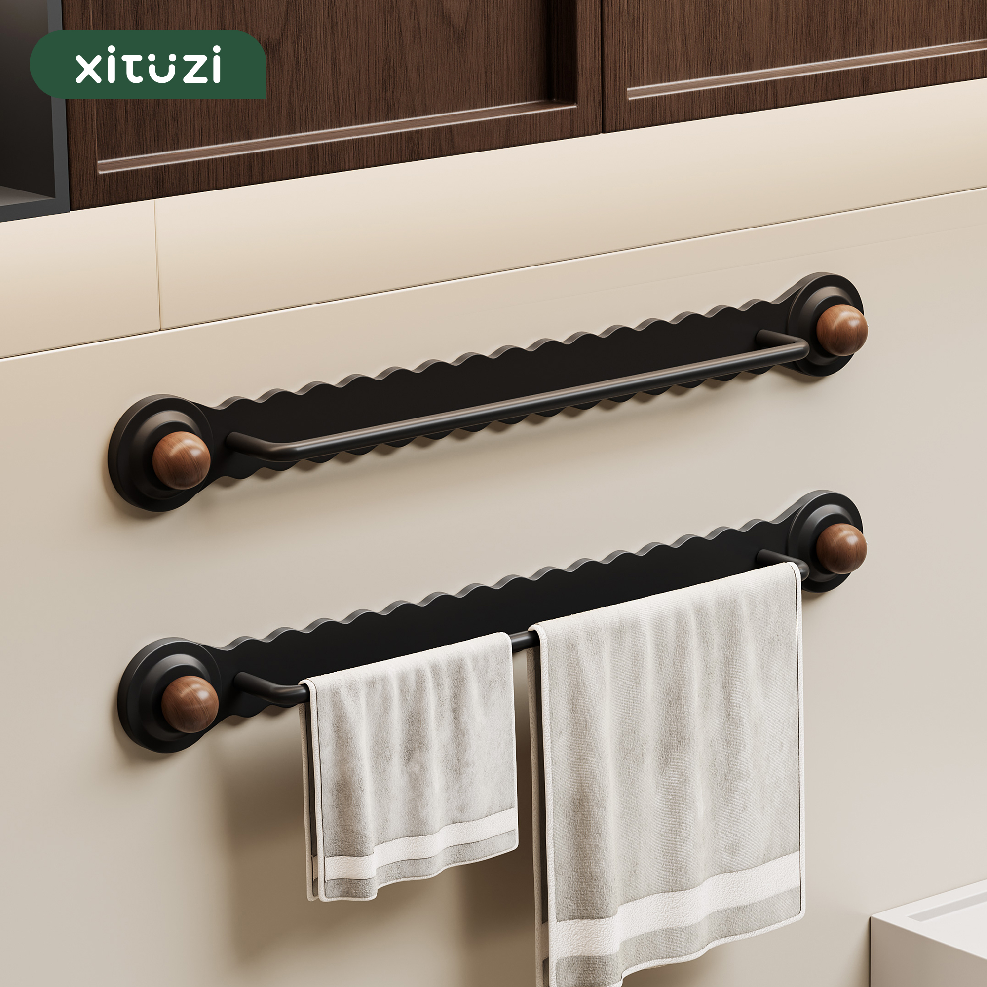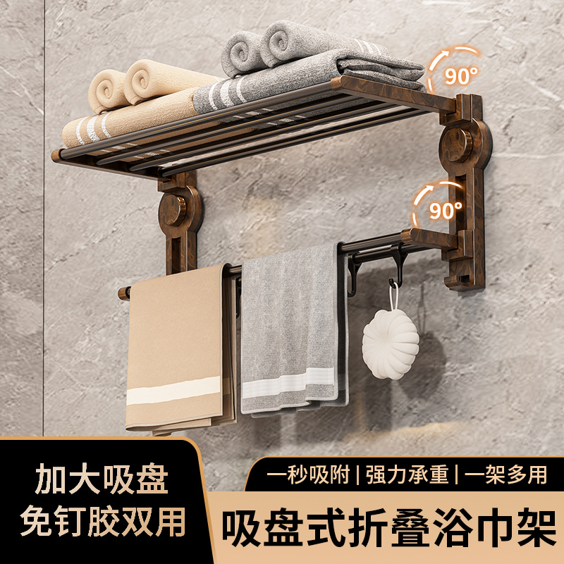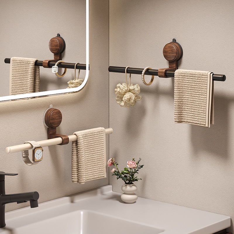 吸盤胡桃木タオル棚の中古風穴なし壁掛けトイレタオル円環浴室バスタオル掛け棚