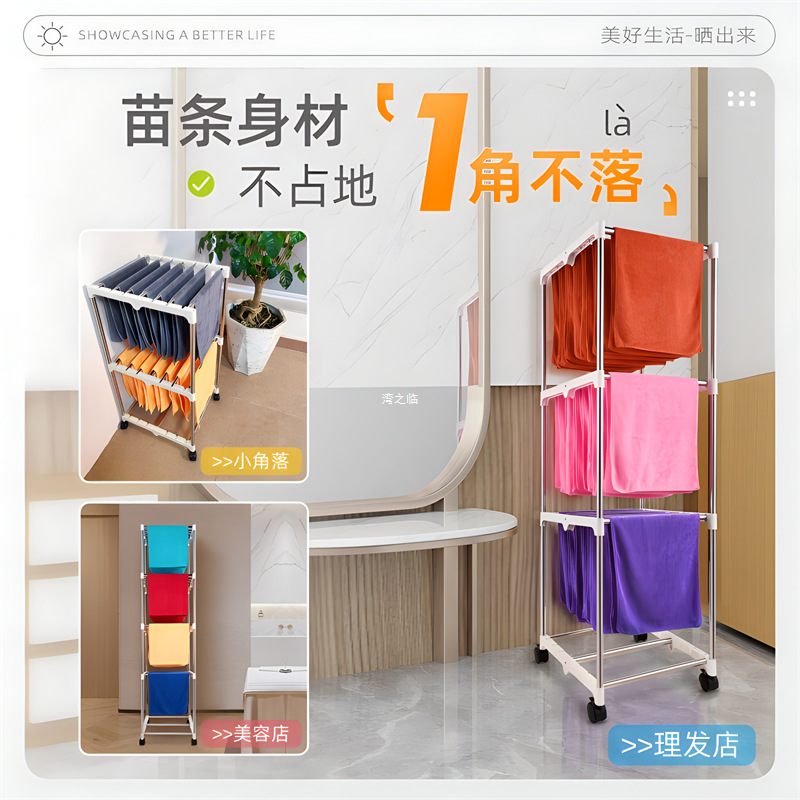 床置き型モバイル吊り下げタオルラック、冷却用小型ラック、美容室、理髪店、布ラック、収納、パンチなし