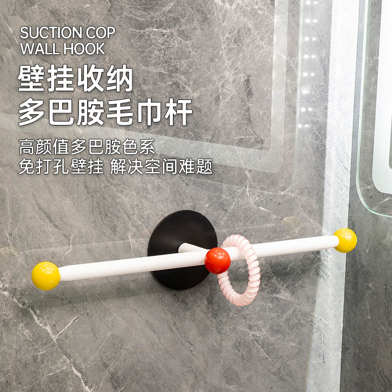 クリエイティブ吸盤タオルラックバスルームパンチフリードーパミンタオルバスタオルハンギングロッドバスルームヘアフープ収納ラック