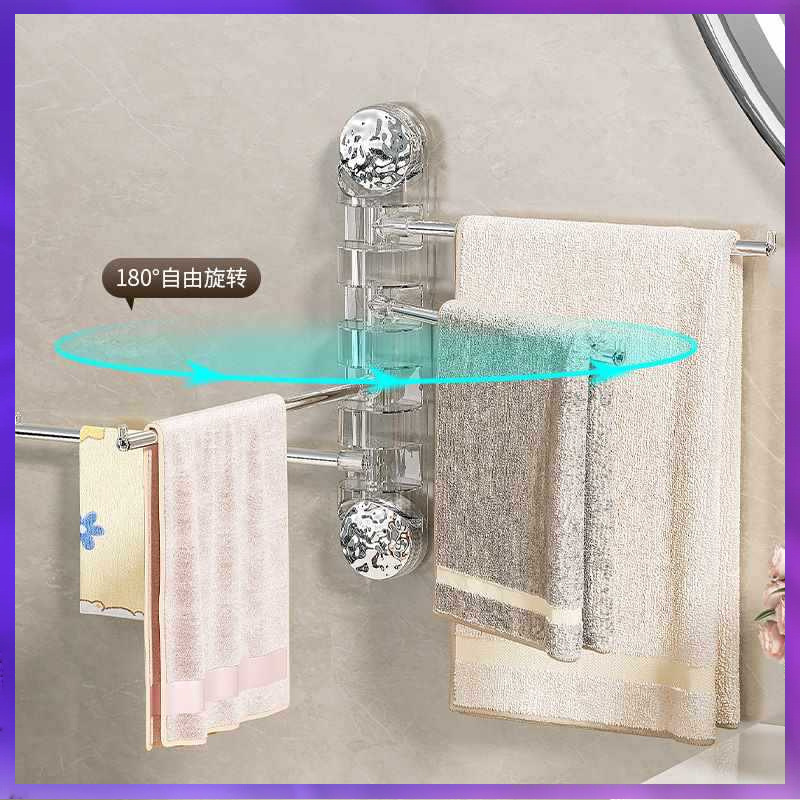 ✅ 吸盤タオルラック インターネットセレブ パンチフリー壁掛け回転収納ラック バスルームタオルバー マルチロッド多機能ハンガー