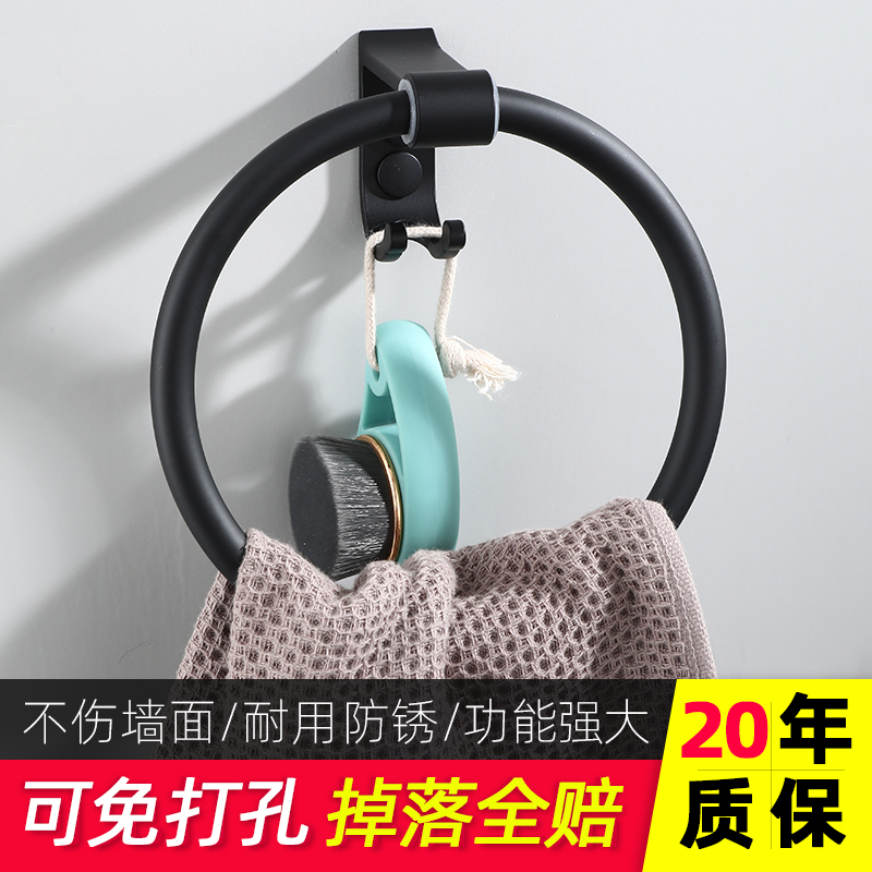 ブラックパンチフリーウォールマウントタオルラックバスルームバスタオルラック収納ラックフックバスルームラックタオルバー