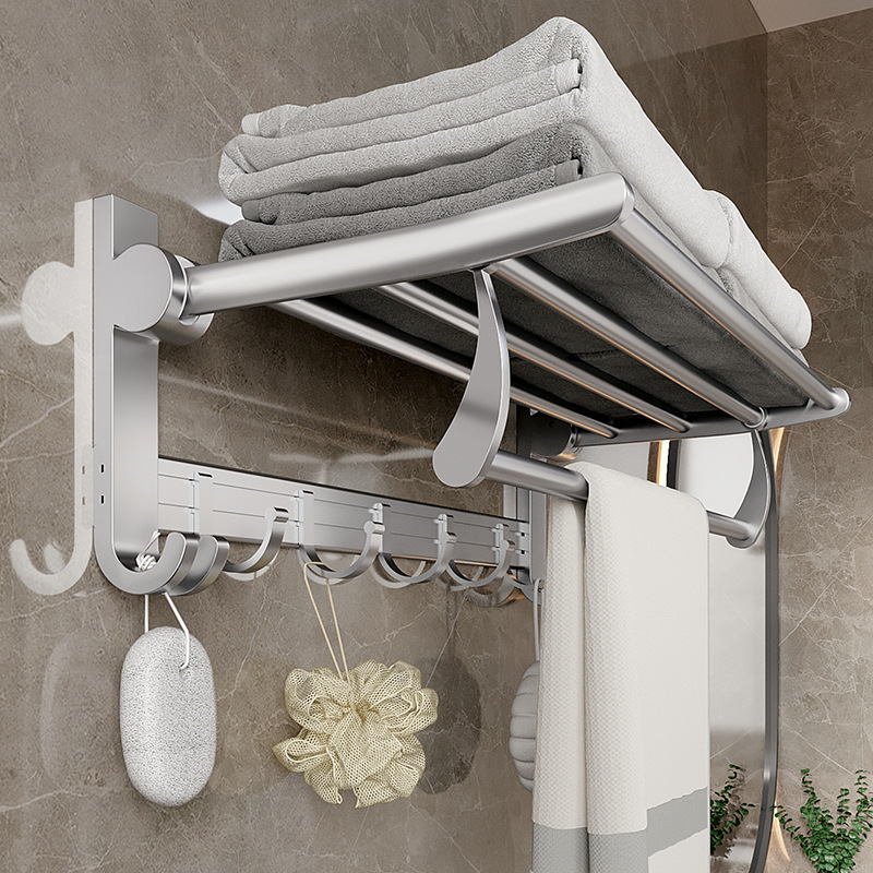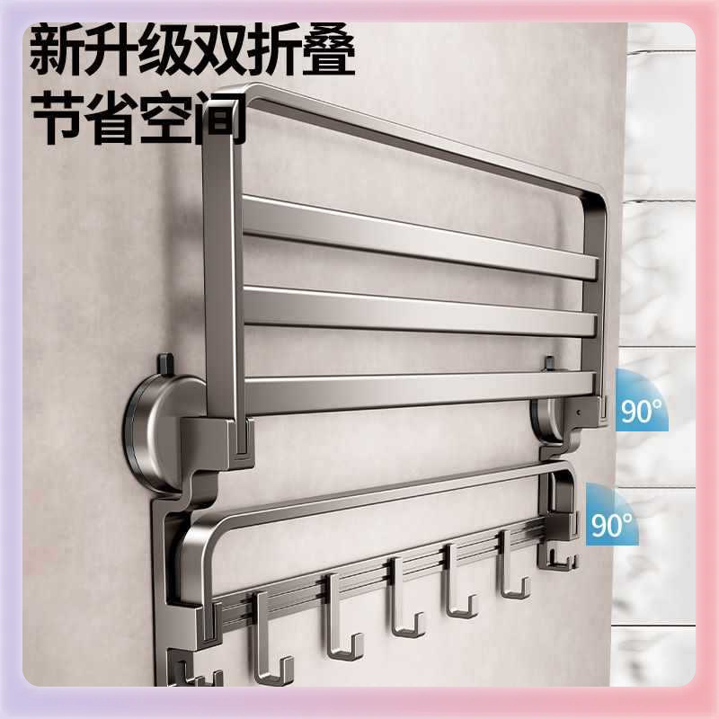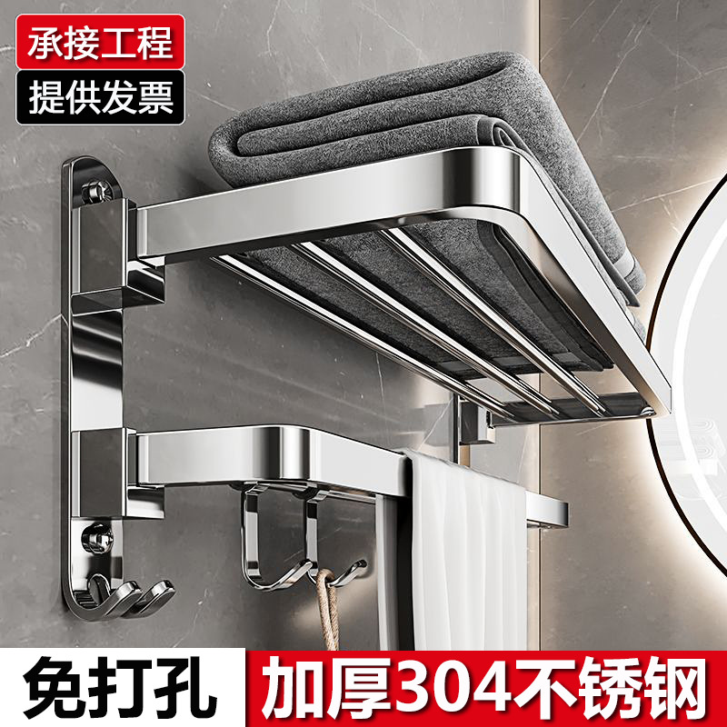 バスルームタオルラック収納ラック一体型パンチフリー壁折りたたみバスルーム衣類ラック304ステンレス鋼