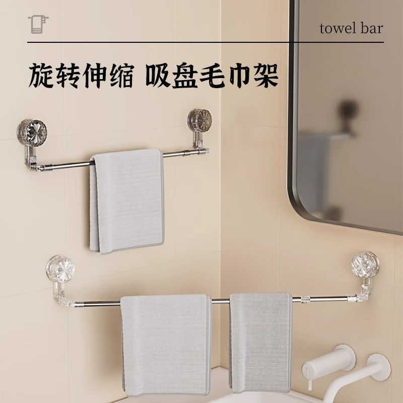 吸盤タオル掛けのシングルバーは伸縮可能です。穴を開けないでください。