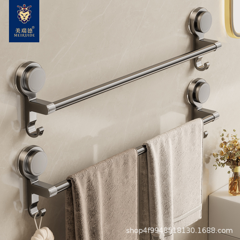 バスルーム収納クリエイティブロッドハンガーバスタオルラック壁掛けシンプルなバスルーム吸盤タオルラックパンチフリーシングルロッド