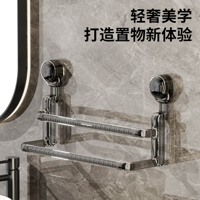 TEMU クロスボーダーダブルロッド吸盤ラックバスルームタオル収納フック付きウェットタオルとドライタオル両用ライト高級バスルーム収納