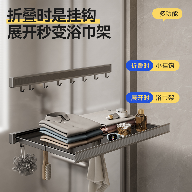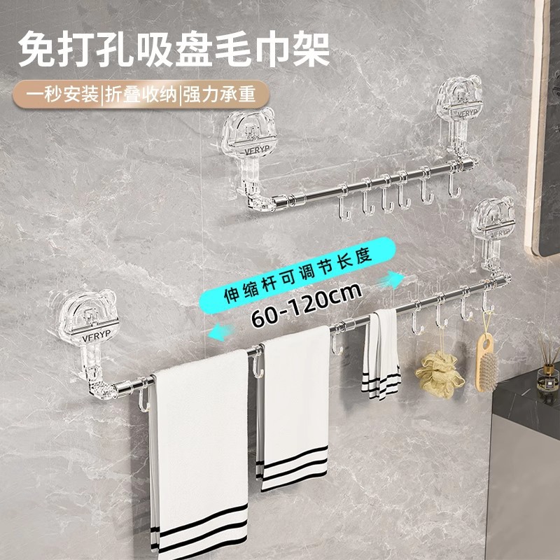 吸盤タオルラック浴室壁掛けパンチフリー格納式タオルバートイレフックタオル収納ラック