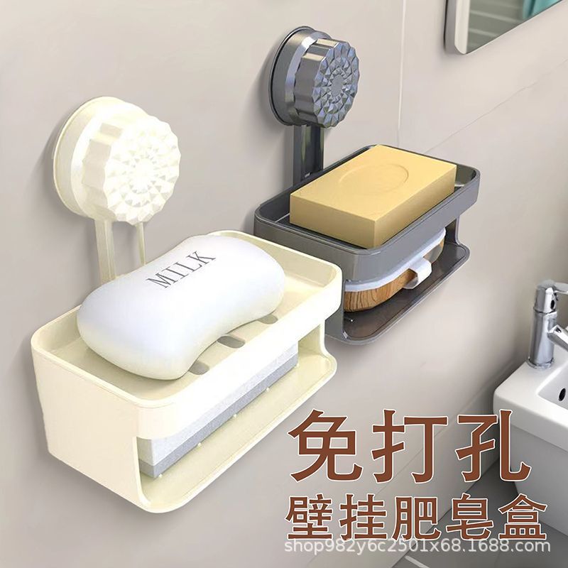 新型壁掛け式吸盤石鹸ケース穴なし二重アスファルトトイレ壁棚高級石鹸ケース