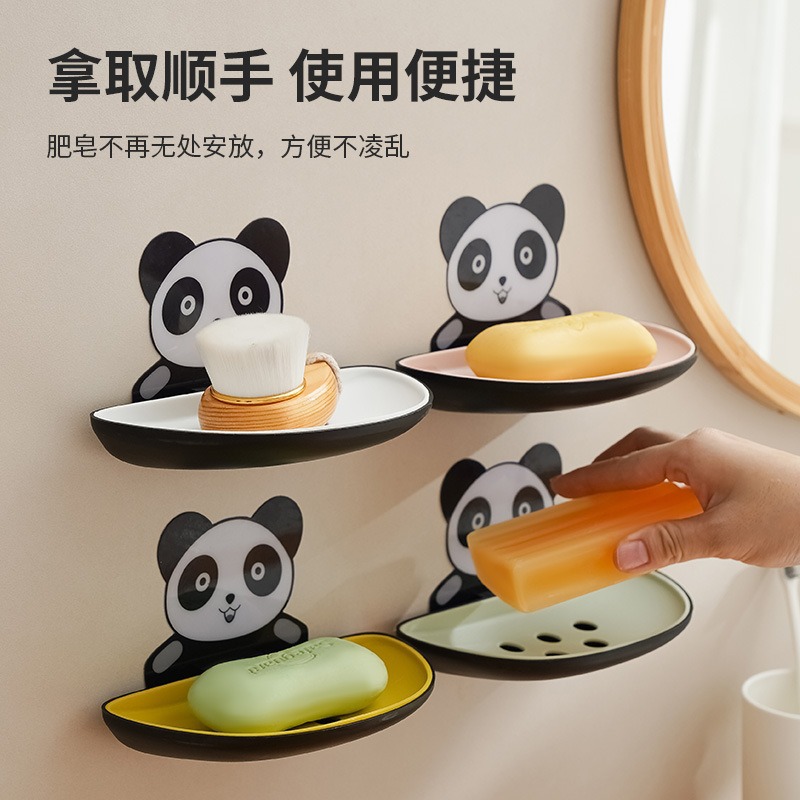 漫画パンダ石鹸ボックストイレ穴なし二重アスファルト石鹸ボックス家庭用浴室収納石鹸棚