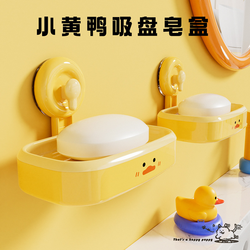 リトルイエローアヒル吸盤ソープボックス壁掛けパンチフリーソープ収納ラック家庭用二層排水ソープ収納ボックス