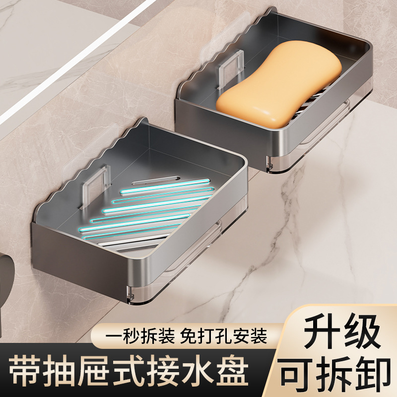 吸盤石けん箱壁掛け式穴なし家庭用軽贅沢トイレ壁に水を入れて棚を置く二重石けん箱