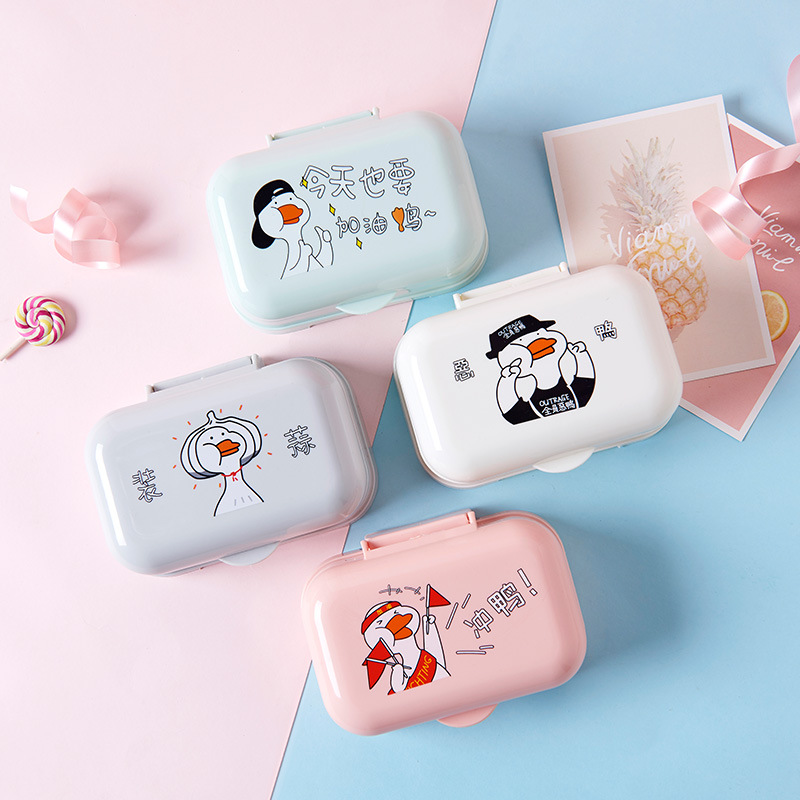 セット漫画石鹸ボックスポータブル肥料カップネット赤アヒルフィットネス石鹸収納ボックス蓋付きクリエイティブトイレ