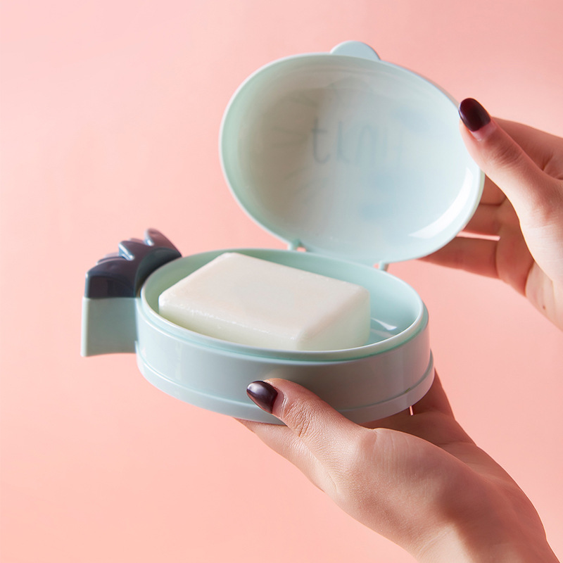 北欧のシンプルな漫画の図案は蓋の石鹸の箱の浴室の家庭用の水切りの石鹸の箱のプラスチックの石鹸の棚の石鹸を持って卸売りをします。