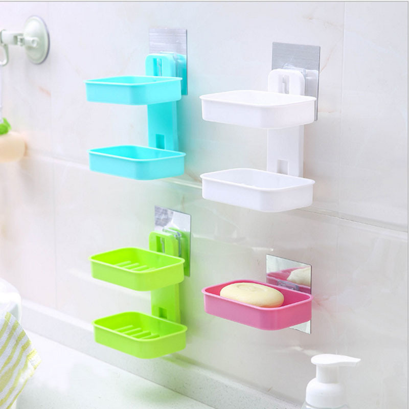 浴室石鹸ケース粘着皿壁掛け式水切り石鹸ケーストイレ棚自粘穴なし二重石鹸ラック