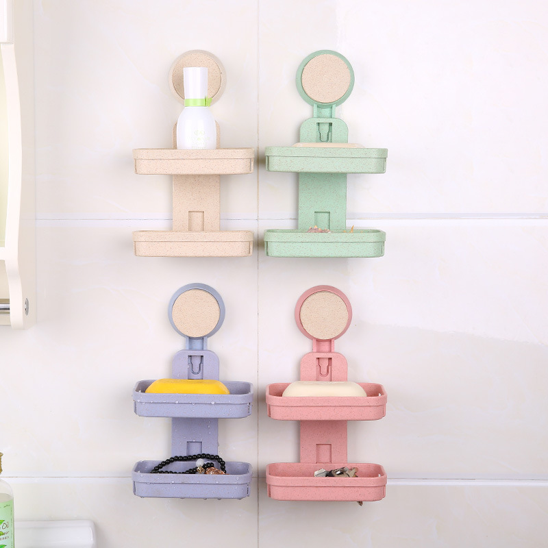 浴室吸盤石鹸ケース二重石鹸ケース水切りアイデアラック壁掛けトイレ洗面台ラック5267
