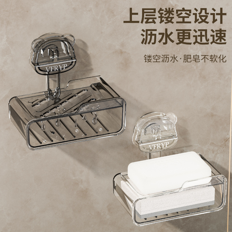 吸盤石鹸ケース壁掛け式穴なし浴室壁棚家庭用二重石鹸洗濯石鹸水切りケース