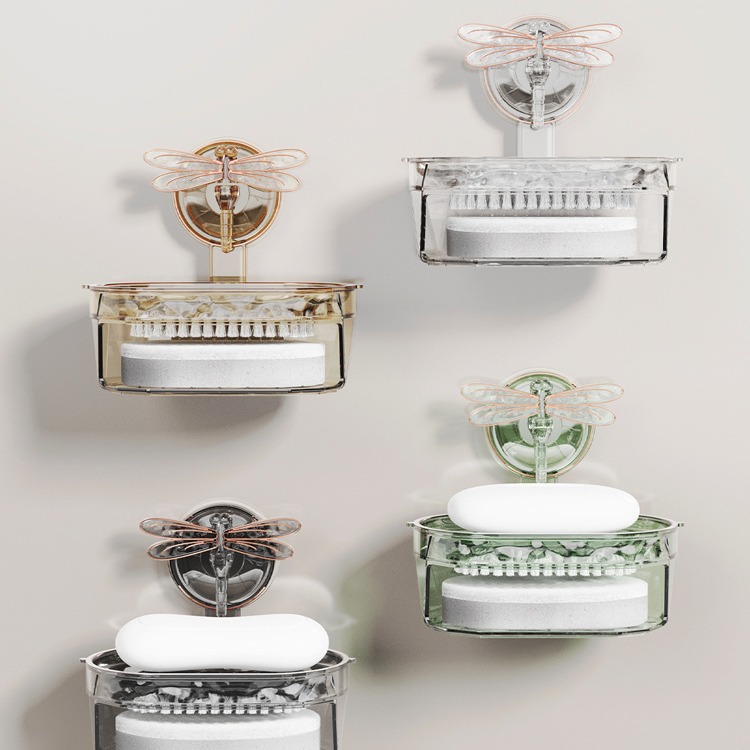 軽くて豪華なトンボの吸盤のスポンジの石鹸の箱の家庭用の穴を開けないで壁掛け式の物棚のトイレの石鹸の水切り棚を置きます。
