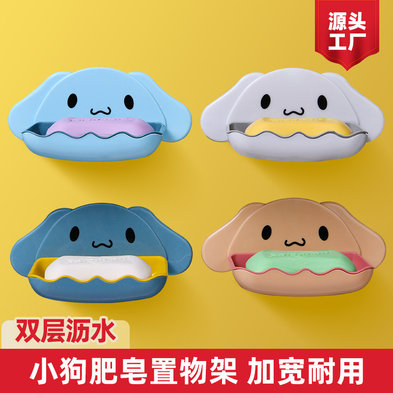 漫画の子犬の石鹸箱パンチフリー浴室二層排水石鹸ラック浴室壁掛け石鹸箱収納