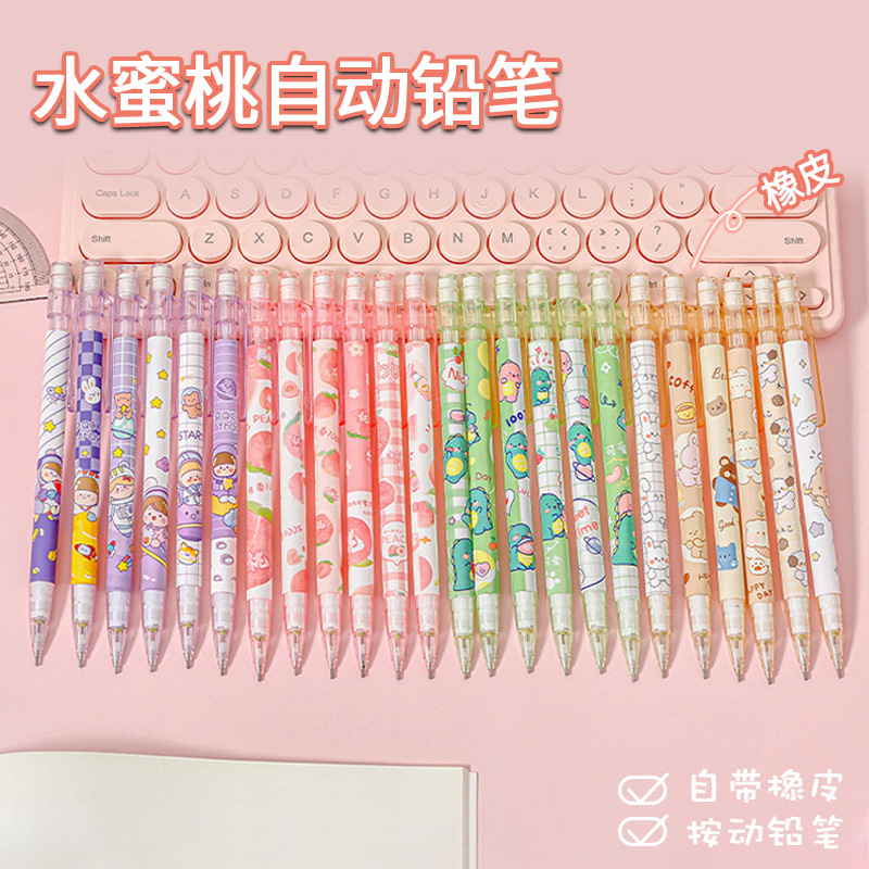 創意水蜜桃自動鉛筆小学生高颜値活動鉛筆かわいい無削押し鉛筆卸売り
