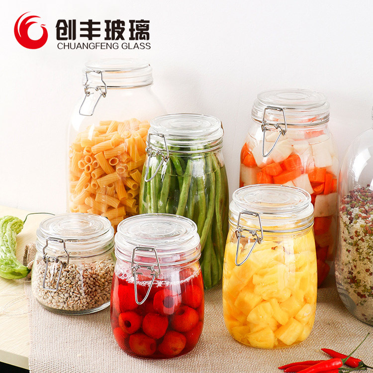 ステンレス鋼バックルガラス保存瓶キッチン穀物密封保存瓶ドライフルーツ蜂蜜ガラス密封瓶