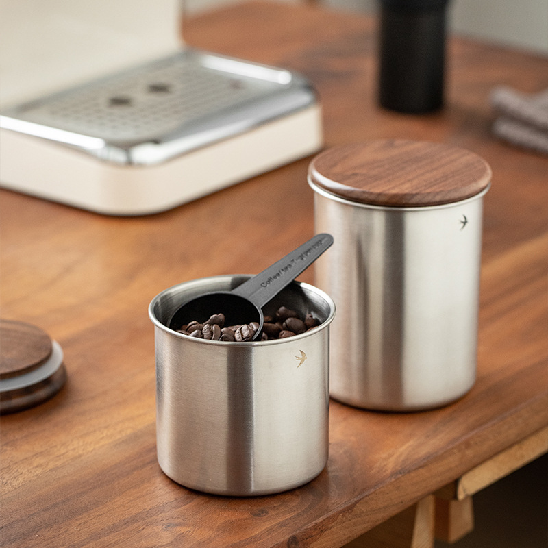 日本式ツバメセットプリントコーヒー粉密封缶ステンレスレトロ実木蓋茶葉豆保存缶