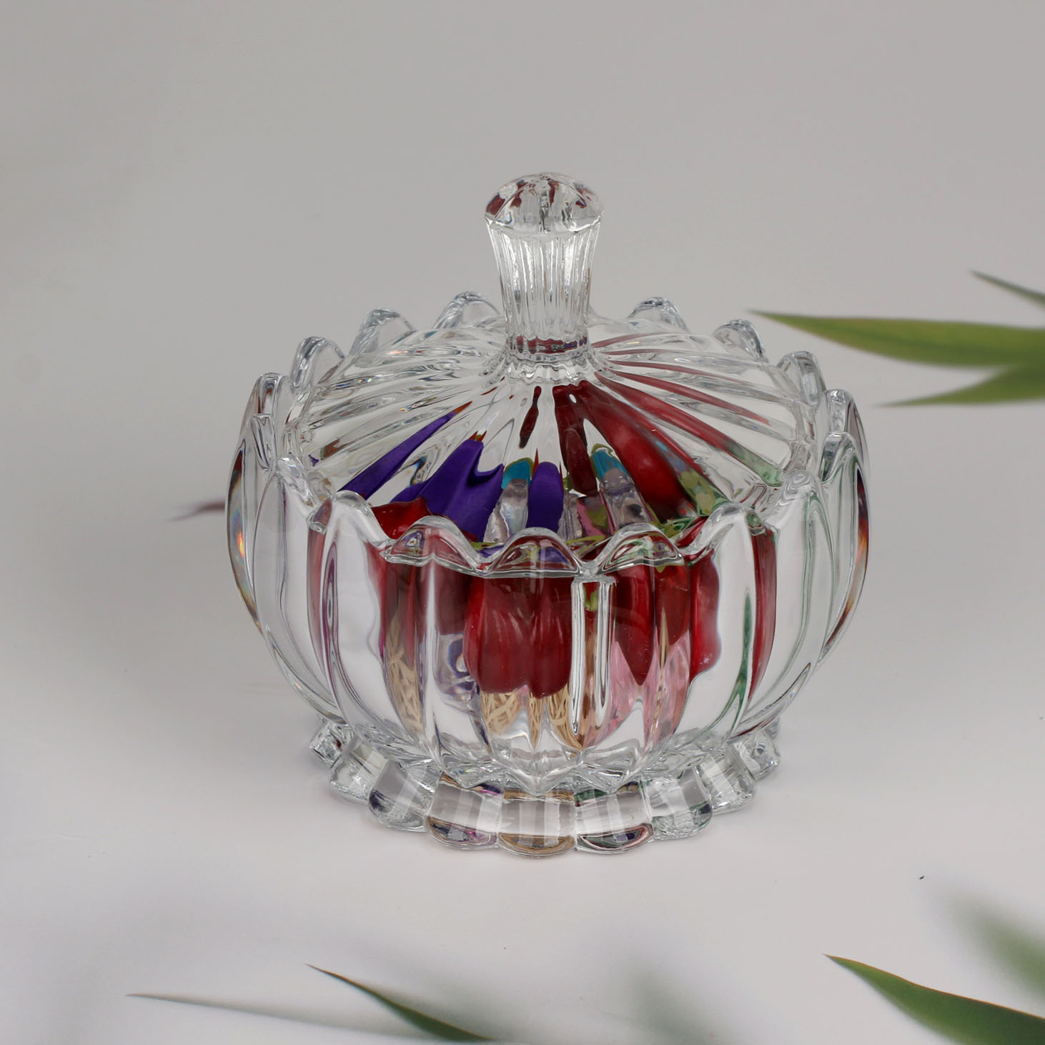 厚い透明なガラスの喜糖のかめの喫茶店の方糖のミルクの塊の缶の香薫のろうそくのかめの家庭の間食の乾燥している果物は貯蔵します。