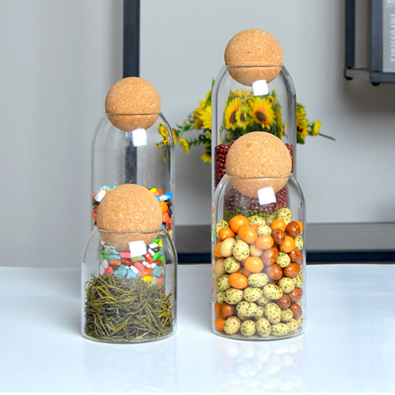 和風家庭用キッチン収納ボール缶ガラス茶缶シンプルなコルク密封缶キャンディー穀物保存缶