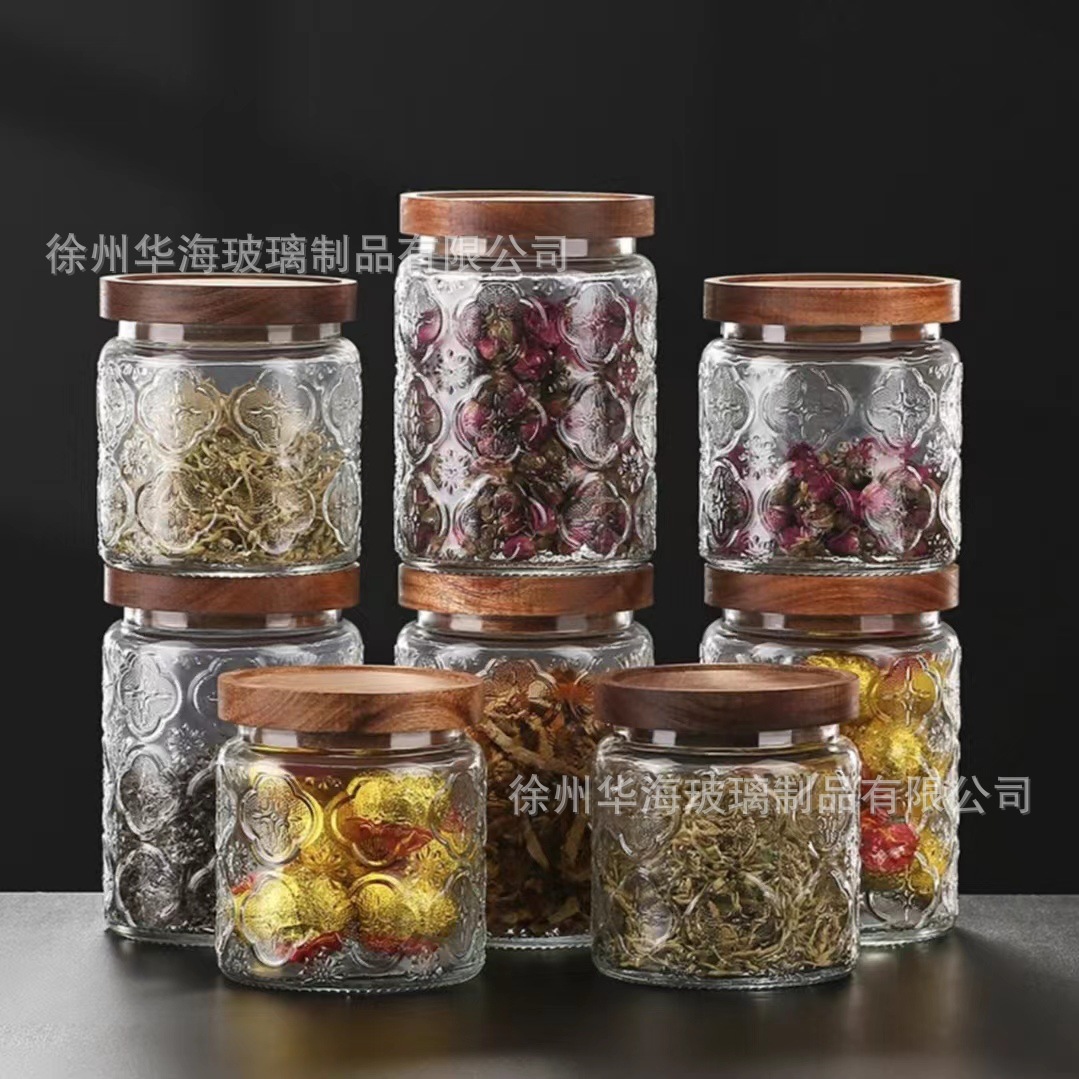 密封缶円形ガラスレリーフ貯蔵缶スナックドライフルーツ収納缶キッチン家庭用厚いレトロなガラス缶