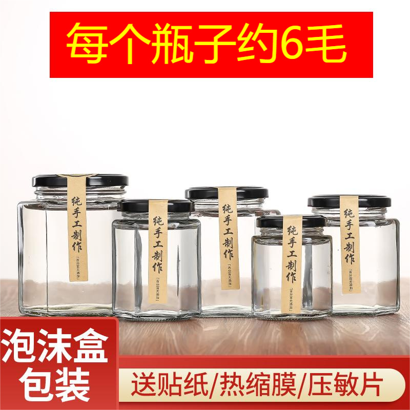 六角ガラス缶密封食品グレードの小さな空の蓋付き 0.5kg レモンペースト蜂蜜チリジャムボトル