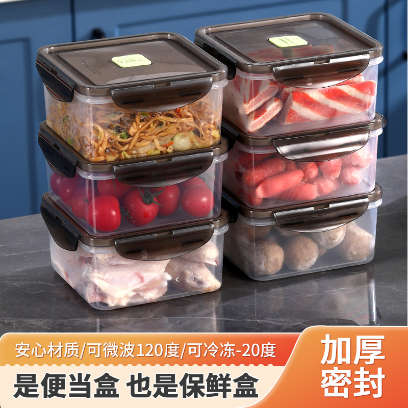 キッチン冷蔵库収纳タッパー家庭用プラスチック穴付き电子レンジ正方形pp透明弁当ボックス卸売