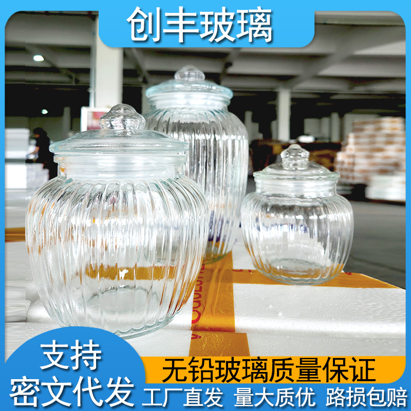 105シリーズ直筒縦紋ガラスつぼキムチ食品収納丸底密封缶厨房収納貯蔵タンク