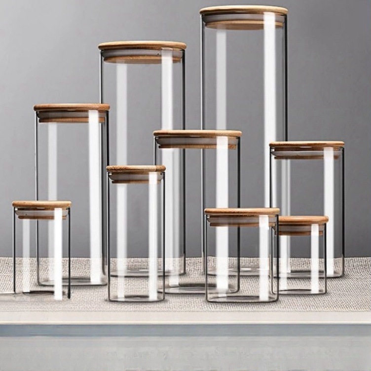 現物収納高ホウ素シリコン竹木蓋食品級ガラス密封缶貯蔵タンク台所整理キャンディー茶葉缶