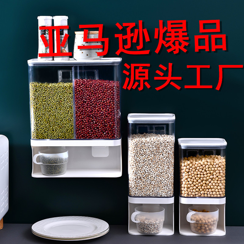 キッチン壁掛け式収納棚五穀雑穀収納タンク防湿密封缶透明押圧式収納ボックス